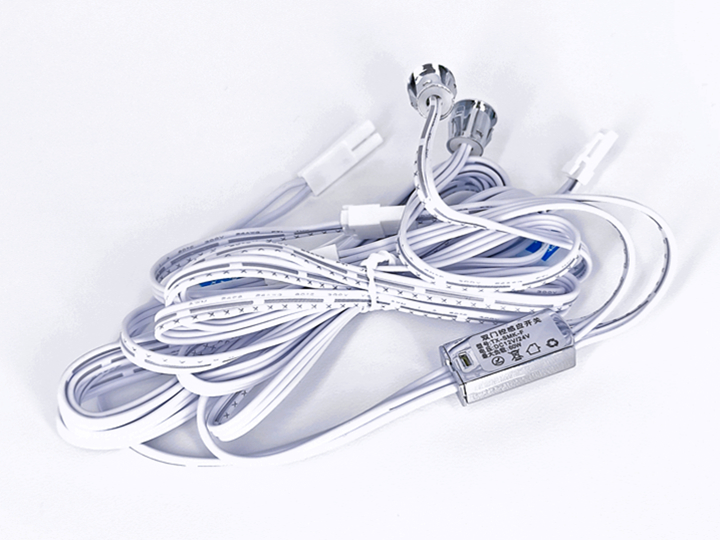 ●安全性高,响应速度快,简洁大方●小巧的开关可隐藏安装在顶部门板内,非常方便●柜门关闭后开关被遮挡灯光熄灭,柜门打开则灯亮,双门控是在单门控的基础上增加了一个感应头●一个开关可同时控制多条灯光同步使用